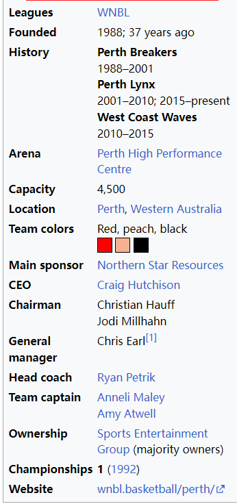 山猫队史仅拿到过1次WNBL的总冠军,可在韩旭加盟后我们有了曙光,艾米-阿特韦尔、亚历克斯-恰巴托尼、艾丽拉-福图、斯蒂芬-戈尔曼、甘特-格拉汉姆、安内利-马利、耶米娅-莫里斯、韦特、艾丽-威尔逊、韩旭的10人轮换足以帮助我们冲击队史第二个总冠军(上赛季折戟半决赛,队史6次总决赛仅92年夺冠)。